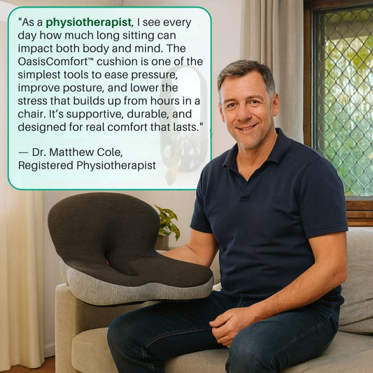 That’s why District Oasis exists: to give desk workers and busy professionals simple, science-backed tools that ease the pressure on your body and quiet the mental noise. From cushions that make sitting comfortable to lights that guide your breath, every product is designed to calm your nervous system and help you reset.